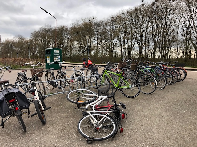 Inimesed Taanis on tervislikud ja kasutavad liikumiseks palju jalgratast ( hommikul rongijaamas)