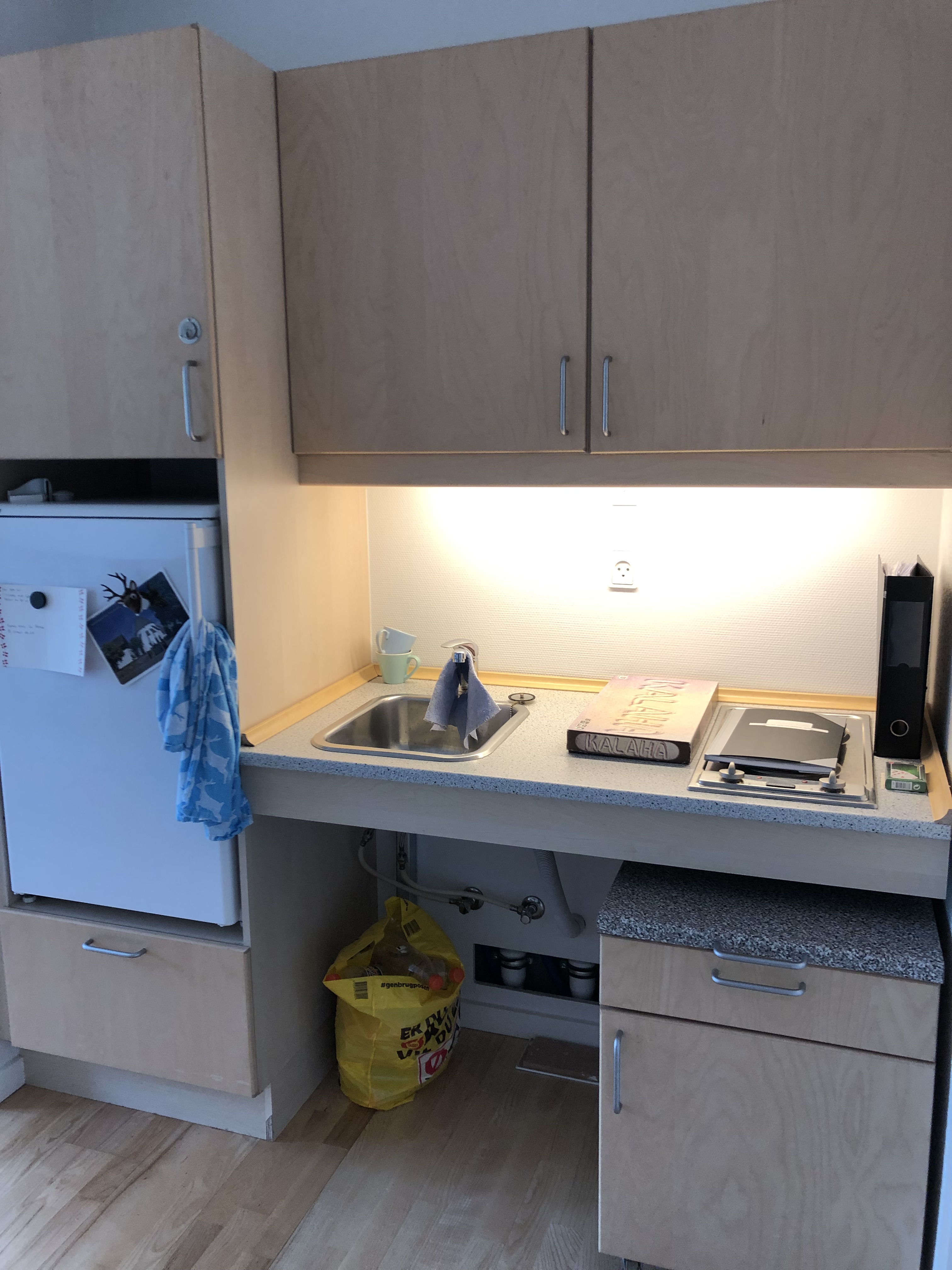 Igas korteris on olemas miniköök. Üks kapp käib lukus- seal hoitakse ravimeid